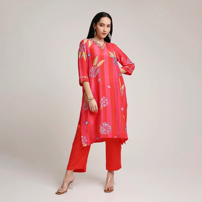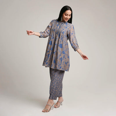Printed Muslin Kurta Set with Sequin Highlights