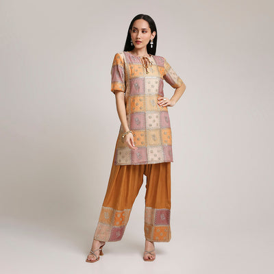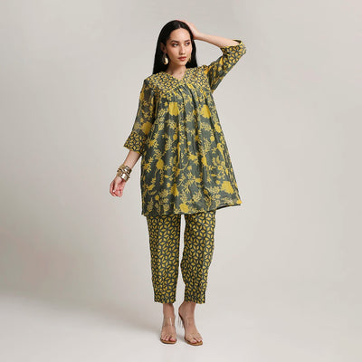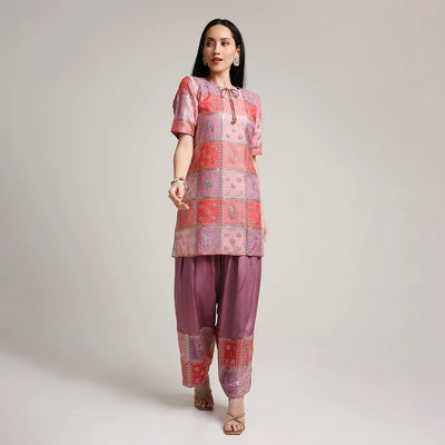 Mul Chanderi Printed Short Kurta Set