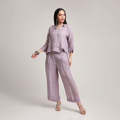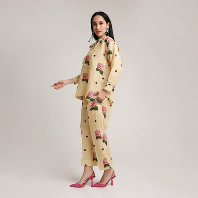 Gauze Linen Co-ord Set with Pearl Detailing