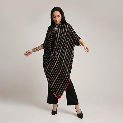 Viscose Organza Poncho Kurta Set with Striped Muslin